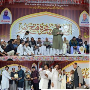बाराबंकी। कस्बा फतेहपुर में हज़रत मखदूम शेख़ हिसामुद्दीन रह० के उर्स के अवसर 03 नवम्बर 2025 को मेला कमेटी द्वारा मेला पंडाल में एक आल इंडिया मुशायरा व पत्रकार सम्मान समारोह का आयोजन किया गया। मुशायरे में मुख्य अतिथि पूर्व कार्यवाहक मुख्यमंत्री उत्तर प्रदेश श्री अम्मार रिज़वी ने शिरकत की। मुशायरे की सदारत राष्ट्रीय सहारा ब्यूरो चीफ हशमतुल्लाह ने की। निज़ामत नदीम फ़र्रूख ने की। मेला कमेटी अध्यक्ष मो०मशकूर ने मेहमाने खुसूसी और पत्रकारों को मूमेंटो देकर सम्मानित किया।पत्रकार इरफ़ान मंसूरी, विजय राम जायसवाल, रिज़वान मुनीर, नीरज शर्मा,अजमत राईन,हयातुर्रहमान, सय्यद खालिद महमूद, चांद मंसूरी, इश्तियाक कुरैशी, मुईद सिद्दीकी, फैसल सिद्दीकी,मो ०अबरार आदि को मेला कमेटी द्वारा सम्मानित किया गया। मुशायरे की शुरुआत कस्बा फतेहपुर के नौजवान शायर हस्सान साहिर ने की